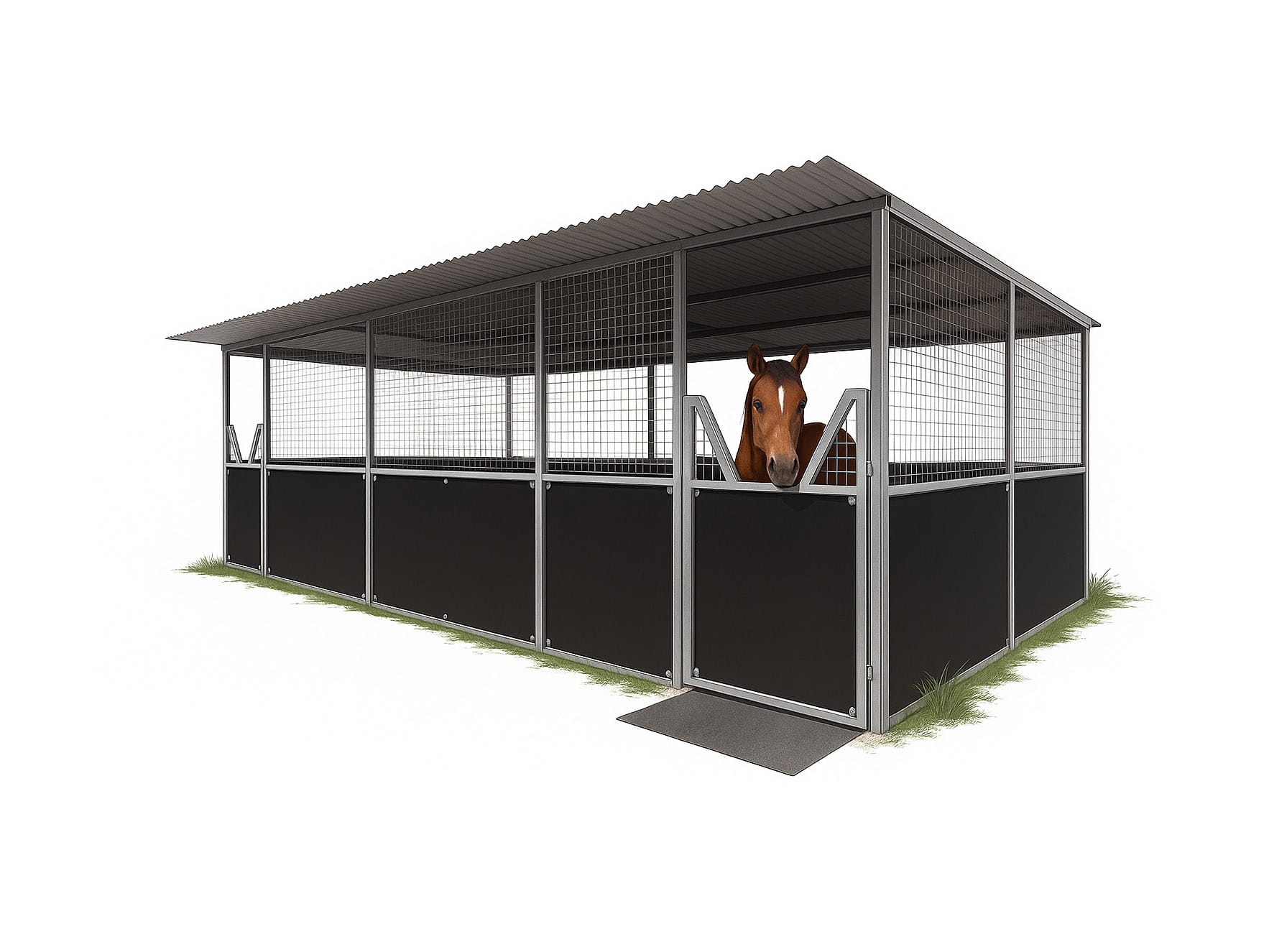 2 Horse Stable System with Yoke Gates 10m x 5m (50m²)