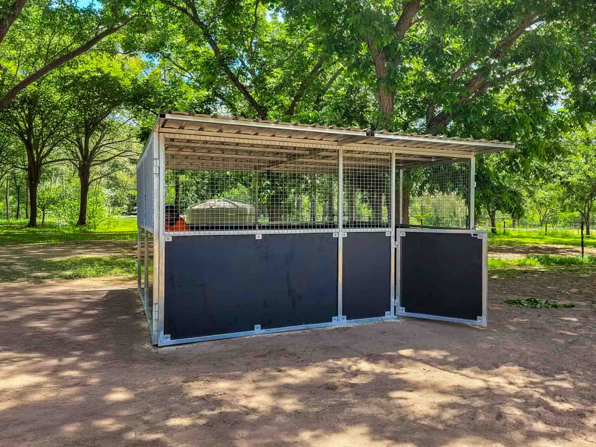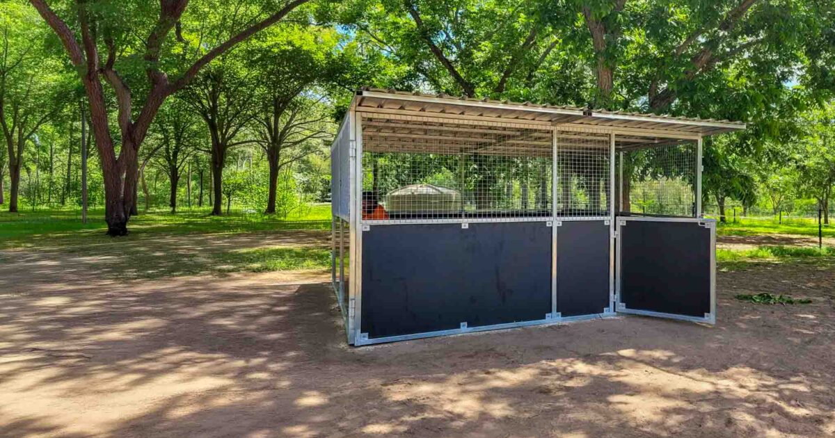 Locally made in Queensland from 50x50mm RHS galvanised steel, this durable stable is designed to withstand harsh Australian conditions. Its practical 2.4m roof height, high airflow ventilation, and form ply panel design make it ideal for ponies, miniatures, and everyday horse care.